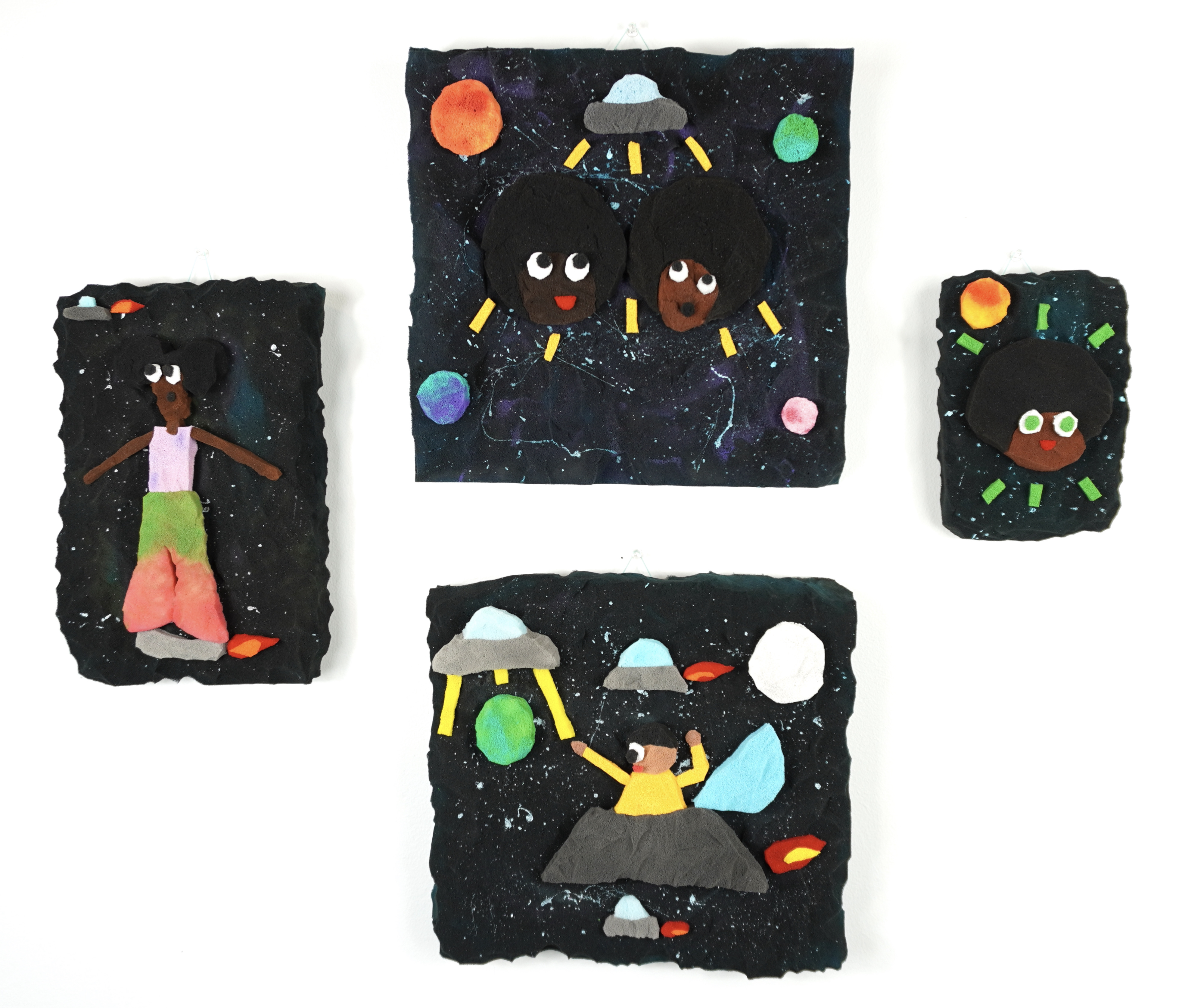 (Displayed at BPAG Lab 4/27/22)Afrofuturism on Foam is a online art exhibit created by Roman Norfleet that features four foam sculptures that depict Black folks roaming freely about the cosmos. Though afrofuturism is not limited to sci-fi and outer space themes, Norfleet finds it important to continue to depict the Black people of the future involved with and inventing highly advanced technology, exploring the universe and having fun in the process.