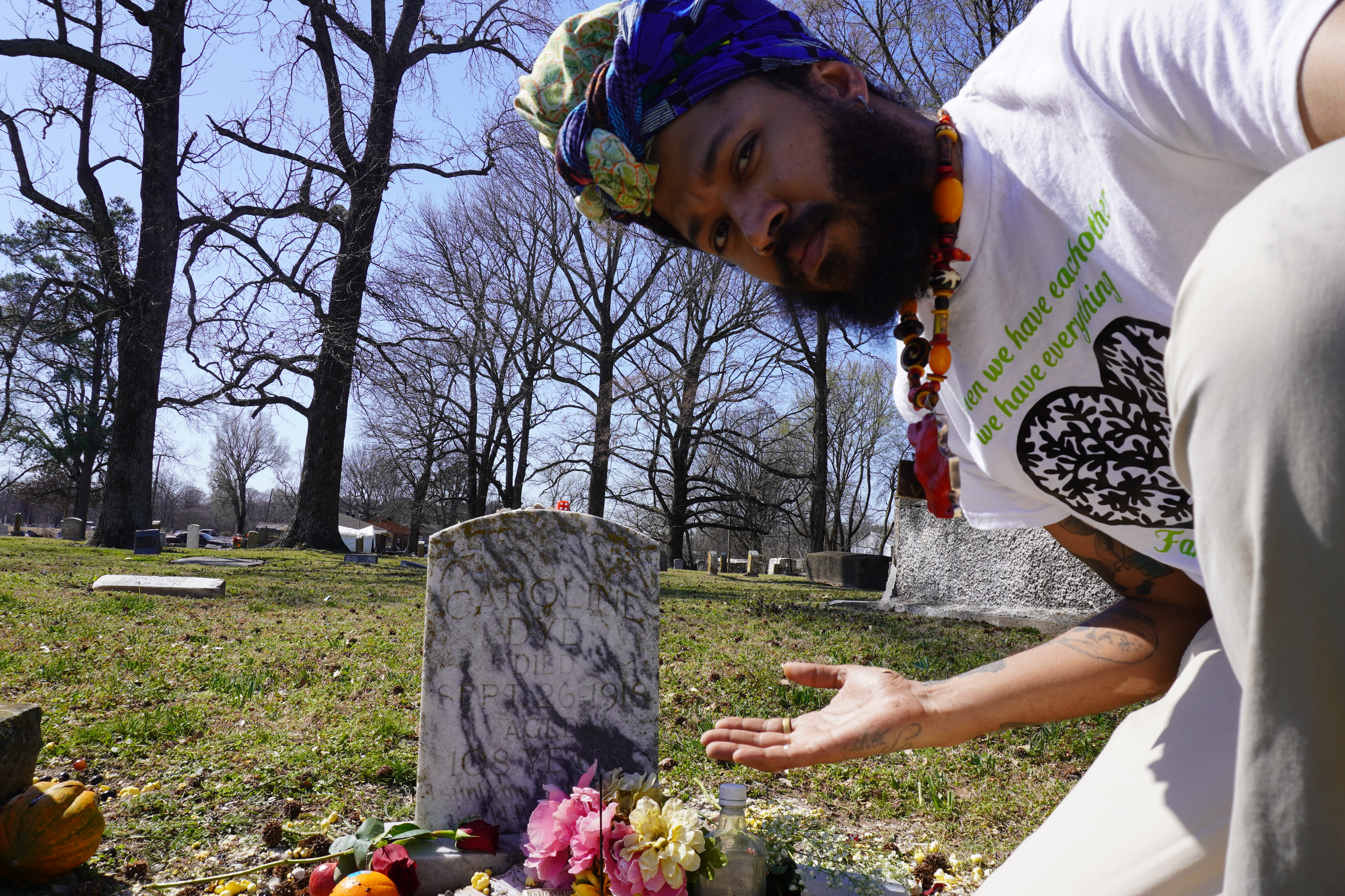 She came to me in a vision and told me to come pay her a visit down in Arkansas—so I did. This past March (2025) I hopped on a flight from Portland, Oregon, made my way to Newport, Arkansas and went to Gum Grove Cemetery—the burial site and final physical resting place of conjure woman Aunt Caroline Dye. Fellow researcher and cultural producer Viktor L. Ewing joined me at the site. I learned about Aunt Caroline Dye in 2024 during research on Black spiritual lineages and practitioners in America. I write this brief article not only to simply share her story for spiritual inspiration with those who may have not heard of her, but by Spirit’s request, as this is to be a reminder to check up on the dead when they call. This is not to say you should follow any ol’ being who wakes you from your slumber or seek out well-known practitioners—no. The call can be from someone in your direct lineage of family or another being no one has ever seen. It is important to remember that our ancestral ties go beyond immediate family, human form and human existence. Listen in truth and with discernment and let your spirit-soul guide you. This trip lead me to many revelations about my own earthly family, who also has roots in Arkansas, and revealed itself to be a process of divination—giving me a glimpse into the future. There were also certain rituals and offerings that took place at the cemetery that cannot be fully mentioned here, but I will share that although I came with my own items to offer, it was revealed to me upon arrival that more than what I brought was required. That “more” was actually taken from me and understanding as to why was given after. Below I will share a bit about Aunt Caroline Dye’s life in my own words based off my research (including psychic), and I will also provide some links to a few articles that have covered her life in greater detail. I will also share videos, music and material culture that reference Aunt Caroline as well as share a bit of visual documentation from my Arkansas journey. May The Most High and the honored ancestor be pleased. May this digital document/altar serve as a reminder to stay in connection with those who have left this realm in physical form and now move as spirit. May we be open to the call. May we remember.