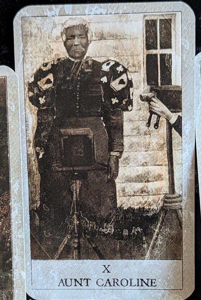 Aunt Caroline Dye (1843–1918), born Caroline Tracy, was a seer and hoodoo / conjure woman who assisted many people while living in Newport, Arkansas. She was born into captivity in South Carolina and was made a “house girl” at just 10 years old. However, she gained her freedom around 1863 and went on to not only become a well known healer, but a successful entrepreneur owning multiple properties. She used spiritual technologies such as cartomancy, spiritual baths, mojo hands and biblical scripture recitation to help those who came to her for guidance and healing. It has also been told that she was given the gift of prophecy, as she was reported to have made from an early age predictions that would stun the adults around her. She also had the ability to track down lost items or property with spiritual techniques and insight. Aunt Caroline was not known to charge people who came to her, but because of the power of her gifts people often left her generous offerings. Aunt Caroline’s diverse clientele came from different backgrounds and locations all around the mid-south. It is said some would travel from hundreds of miles a way by train to consult her about many different things ranging from personal to business. Visits to Aunt Caroline have been documented in various forms such as writings, video interviews and even in music from southern recording artists like The Memphis Jug Band, W.C. Handy, Johnnie Temple and more. The popular Hoodoo Tarot deck by Tayannah Lee McQuillar and illustrated by Katelan V. Foisy is a more contemporary peice of material culture that also features and pays homage to Aunt Caroline Dye. Aunt Caroline Dye’s power and influence still permeates though southern mystic folklore culture and many make pilgrimages to her grave site to this day. Learn more about the legacy and life of Aunt Caroline Dye via the links and videos below.
